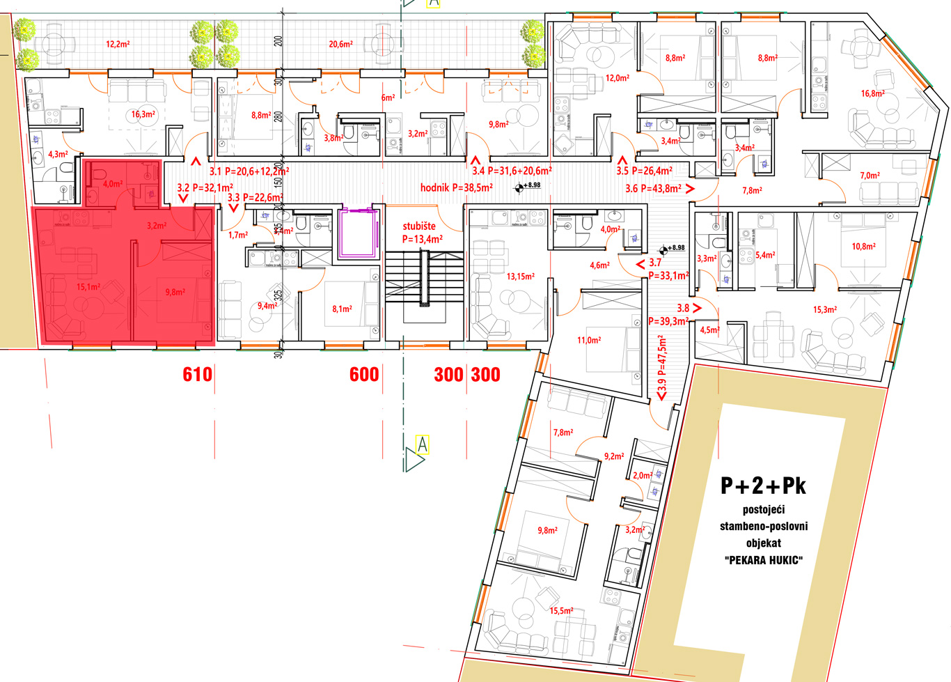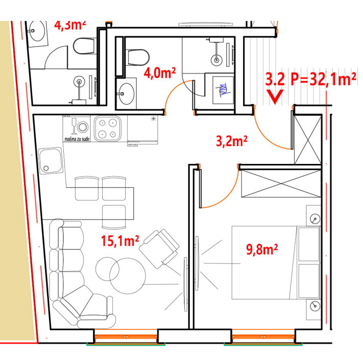 Stan 3.2 user2024-02-01T21:24:01+01:00 Kvadratura stana – 32,10 m2 KARAKTERISTIKEHodnik – 3,20 m2Dnevni boravak i kuhinja – 15,10 m2Spavaća soba – 9,80 m2Kupatilo – 4,00 m2 Tlocrt i 3D prikaz Na slikama ispod možete vidjeti tlocrt stana i sprata, dok su ispod prikazane fotografije stana i zgrade. Podijeli na mrežama Facebook Twitter LinkedIn Google + Email